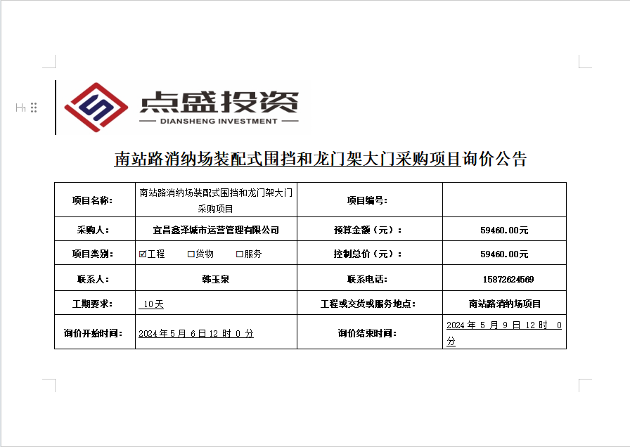 南站路消納場(chǎng)裝配式圍擋和龍門架大門采購(gòu)項(xiàng)目詢價(jià)公告